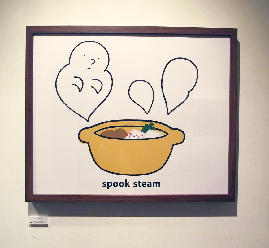 Let’s look at one called Spook Steam. There’s a ghost in it and a steaming pot of nabe. In the accompanying, short text underneath, it reads,